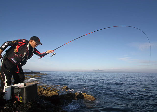 ここマナイタは、朝一に尾長の急襲に備えなければならない場所だ。やや太い仕掛けで挑みたいところだったが、当日は潮目が理想通りの姿を見せないので本流釣りを見切り、際釣りに変更した。原さんの釣り座はワレ。足元の払い出しと引かれ潮とがぶつかるところへマキエを打ち込み様子を見る。エサ盗りは手のひらサイズのイスズミが足元にパラパラ見える程度だ。だが徐々に集魚効果が見えてきた。沖目の宙層に青物の群れが見え隠れしている。ロングハリスにしてその中にウキを通す。仕掛けを手直しして1投目に竿を曲げたのは尾長だ。本命ながらも型が小さい。